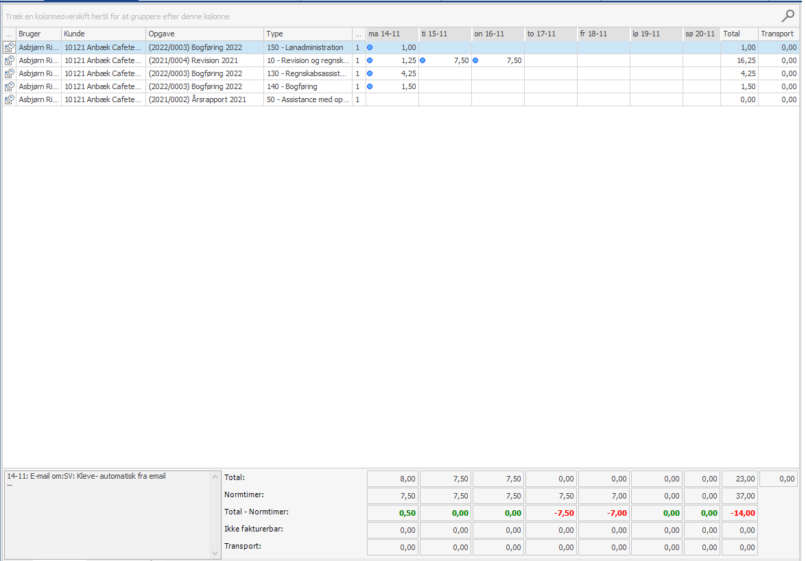 Se nedenfor et eksempel på, hvordan din ugerapport kan se ud: